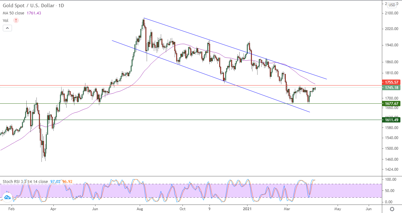 يتزايد التفاؤل بشأن آفاق مناخ الأعمال حيث يحصل المزيد من الأمريكيين على جرعات اللقاح، ويهدف الكونجرس إلى توفير تدابير إنفاق إضافية للمساعدة في تسهيل التعافي الكامل من جائحة فيروس كورونا. يُظهر تعقب اللقاح التابع لمراكز السيطرة على الأمراض والوقاية منها (CDC) أن 32.6٪ من سكان الولايات المتحدة قد حصلوا على جرعة لقاح واحدة على الأقل، وأعلن الرئيس جو بايدن يوم الثلاثاء أن برنامج اللقاح سيكون مفتوحاً لجميع البالغين الأمريكيين بحلول 19 أبريل/ نيسان، قبل الجدول الزمني السابق في الأول من مايو/ أيار.