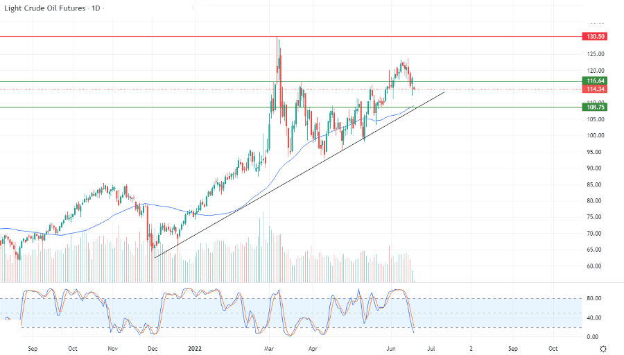 ولهذا تظل توقعاتنا بترجيح سيناريو ارتفاع النفط خلال تداولاته القادمة، بشرط عودة استقراره أولاً أعلى مستوى المقاومة 116.64، ليستهدف بعدها مستوى المقاومة المحوري 130.50.