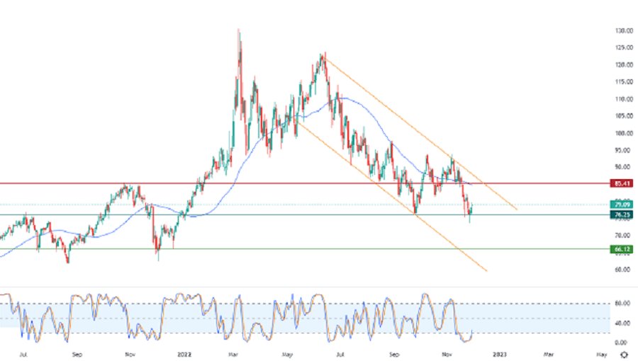 لهذا نحن نرجح عودة انخفاض النفط خلال تداولاته القادمة، خاصة في حالة كسره للدعم 76.25، ليستهدف بعدها مستوى الدعم 66.00.
