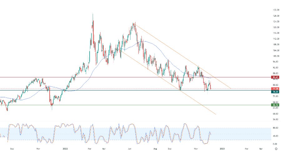 لهذا فتوقعاتنا تشير إلى انخفاض النفط خلال تداولاته القادمة، خاصة في حالة كسره لمستوى الدعم المحوري 76.25، ليستهدف بعدها مستوى الدعم 66.12.