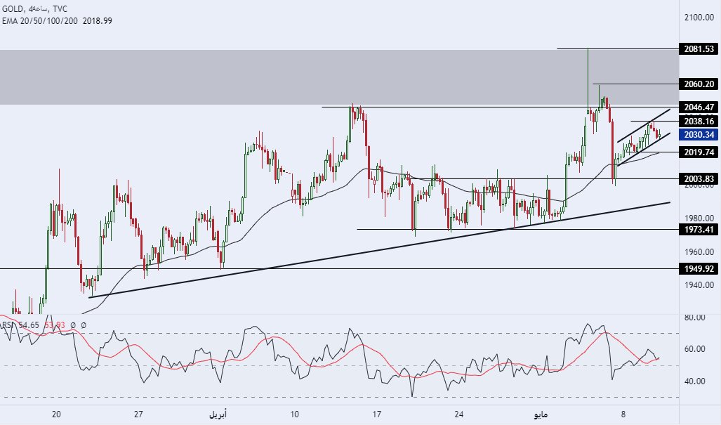 تقنيا، تواصلت التداولات الضيقة للذهب على مدار الأسبوع الجاري، حيث يبحث الذهب عن اتجاه بعدما ارتد الذهب متراجعًا من اعلى مستوياته منذ مارس العام الماضي، وهي مستويات عرض قوية لم يستطع الذهب اختراقها على مدار 3 سنوات. على الجانب الاخر، يتداول الذهب أعلى خط اتجاه صاعد على الإطار الزمني للأربع ساعات. في نفس الوقت يسجل الذهب يتداول داخل قناة سعرية صاعدة على الإطار الزمني للــ 50 دقيقة. في الوقت الحالي يتداول السعر أقل من مستويات المقاومة التي تتركز عند 2037 و2047 على التوالي. في نفس الوقت يتداول الذهب اعلى مستويات الدعم التي تتركز عند 2020 و2003. استمرت سيطرة الاتجاه العام الصاعد مع تداول السعر أعلى متوسط الحركة 50 على الإطار الزمني لليوم، كذلك ايضًا على للأربع ساعات، بينما يظهر مؤشر القوة النسبية التحرك تباين يعكس ضعف الحركة التي يسجلها الذهب في الوقت الحالي. من المتوقع أن يواصل الذهب التباين طالما استقر اعلى مستويات خط الاتجاه الصاعد واقل من القمة التاريخية المسجلة.
