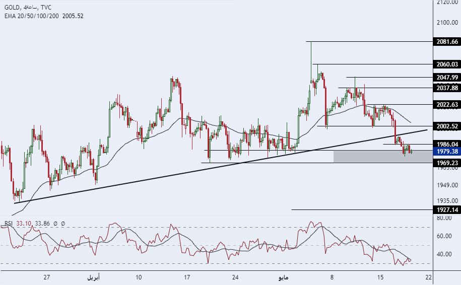تقنيا، تراجع سعر الذهب خلال التداولات الصباحية اليوم الخميس، حيث استقر اقل من خط اتجاه الصاعد على الإطار الزمني للأربع ساعات، كما يتداول السعر أقل من مستويات المقاومة التي تتركز عند 1986 و2000 على التوالي. في نفس الوقت يتداول الذهب داخل منطقة مقاومة تمدد ما بين مستويات الدعم التي تتركز عند 1980 و1970. تراجع السعر أقل من متوسط الحركة 50 على الإطار الزمني للأربع ساعات، كذلك على الإطار الزمني للســ 60 دقيقة. بينما تواصل ارتفاع السعر أعلى متوسط الحركة المذكور على الإطار الزمني لليوم، في إشارة للتحول الهابط عكس الاتجاه العام الصاعد. يظهر مؤشر القوة النسبية تحرك في مناطق تشبع بيعي قد تدفع السعر إلى التصحيح الصاعد قبل معاودة التراجع.