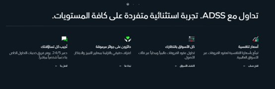 على الرغم من أن ADSS لا تقدم ميزات فريدة بشكل خاص، إلا اننا نود أن نشير إلى أن المتداولين في إي دي إس إس سيتعاملون مع مؤسسة مالية رائدة بمنطقة الشرق الأوسط والخليج وشمال إفريقيا. على المتداولين ان يكونو واثقين ان الوسيط ADSS هو وسيط ومؤسسه ناجحه وموثوقة.