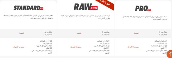 يوفر حساب Raw ECN فرق منخفض يصل إلى 0.1 نقطة، على الرغم من أن قسماً مختلفاً يشير أنه يصل إلى 0.1 نقطة مع عمولة 6 دولارات. يمثل هذا عرضاً جذاباً للغاية، وننصح المتداولين بالاستفادة منه، والحد الأدنى للإيداع 500 دولار أكثر من معقول. والفرق الوحيد بين حساب Raw ECN وحساب Pro ECN هو العمولة المفروضة، والتي تنخفض إلى 4 دولارات، ولا يزال من الصعب العثور على عرض أفضل في الفوركس. خيارات الأصول هي نفسها عبر جميع أنواع الحسابات الثلاثة، والحد الأقصى للرافعة المالية هو 1: 500. الحسابات الإسلامية متوفرة عند الطلب.