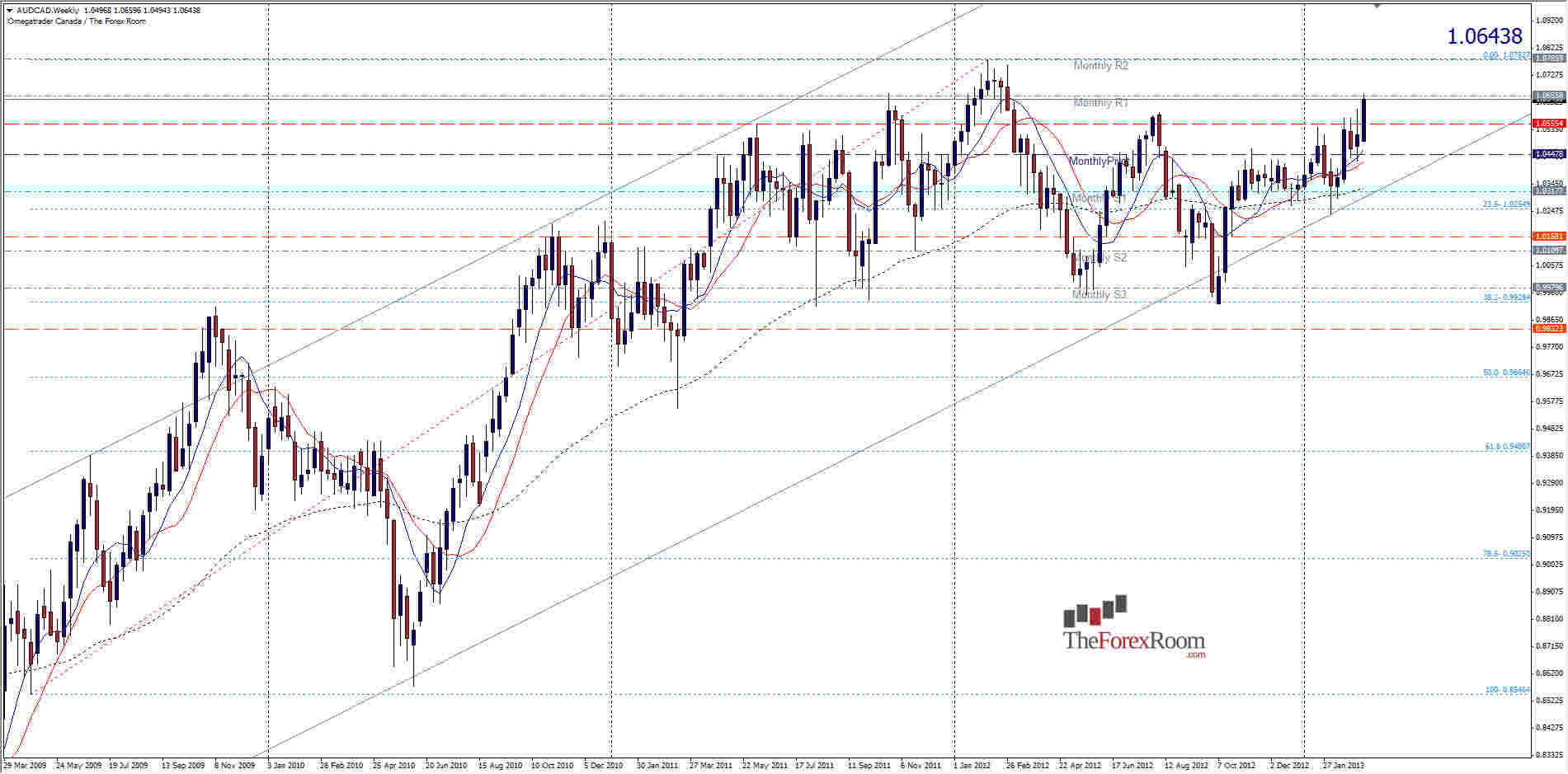 كانت الأرقام في الواقع ممتازة، و لكن الزوج الآن يواجه مستوى مقاومة قوي يمكن رؤيته بشكل أسهل على الرسم البياني اليومي في الأعلى. الإرتفاعات و الإنخفاضات السابقة من الأسابيع و السنوات الماضية، و مستوى R1 الشهري كنتيجة لذلك، يقع مباشرة امام طريق الحركة التصاعدية للأعلى. مستوى 1.0650 يعتبر مستوى أساسي لهذا الزوج ، كما أن مستوى 1.0400 يعتبر مستوى أساسي لزوج الدولار الأسترالي/الدولار الأمريكي. علينا العودة وصولاً إلى عام 1996 لرؤية المقاومة الحقيقية التي تنتظر هذا الزوج عند هذا المستوى. بالنسبة للآن، إذا ما توجهنا للأعلى، سوف يكون المستوى التالي هو أعلى مستوى خلال 15عاما ً تقريباً و الذي تم الوصول إليه في شهر فبراير 2012 عند 1.0785.