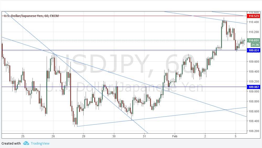 كتبت يوم الخميس الماضي بأنه على مايبدو فإن تداولات الشراء كانت الطريقة المفضلة، والسعر استمر بالإرتفاع ما بعد المنطقة 109.50 إلى جانب الخط الواضح الأقل مقاومة. على الرغم من الميول التنازلية طويلة الأجل، فإن الين يعتبر من العملات الأضعف مقابل الإرتفاع الأخير للدولار الأمريكي. شهدنا بداية فشل التحرك التصاعدي وكأنه وصل إلى إلتقاء نمط تنازلي طويل الأجل مع المقاومة عند 110.52، والذي يمكن أن نراه على الرسم البياني للسعر أدناه. الإختراق فوق هذه المنطقة سوف يكون مؤشر تصاعدي جداً. يبدو بأن الدعم الجديد عند 109.83 صامد بالفعل، وكأن السعر يستعد لتحدي آخر للمستوى 110.52. على الرغم من أن هذه المنطقة تبدو قوية، إلا أن لدي ميول تنازلية اليوم.