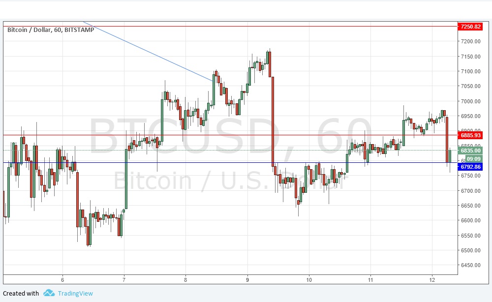 بالأمس لم تكن لدي ميول توجهية ورأيت بأن التداول الناجح بهذا الزوج على الأغلب أن يكون صعباً. أعتقد بأن هذا التحليل كان جيداً، حيث أن السعر تحرك للأعلى والأسفل ولكنه عاد إلى استخدام هذه المستويات السعرية الرئيسية المنفصلة شكل ضيق، اللذان يظهران بشكل قريب من الشمعة على الرسم البياني أدناه. الوضع حذر جداً بالنسبة للمتداولين الذين يحاولون التداول بالبتكوين، ولم يتغير الوضع، وبالتالي ربما أن يكون من الحكمة البقاء خارجاً. يحاول السعر الإرتفاع، ولكن هناك نمط تصاعدي طويل الأجل مع الكثير من البائعين والذي يجعل الوضع عرضة لحركات تراجعية مفاجئة. لن أقوم ببساطة أن أتداول بالبتكوين للفترة الحالية، ولكني أقدم المستويات التقنية في الأعلى، والتي من المفترض أن تكون الأفضل للإستخدام لأي شخص يود المحاولة.