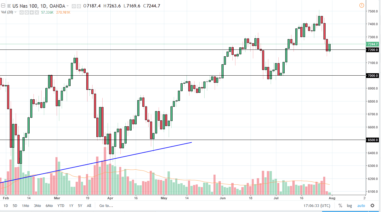 ارتد مؤشر NASDAQ100 قليلاً خلال تداولات الثلاثاء، واستخدم المستوى 7200 كمنطقة دعم. من المفترض أن يستمر السوق بالتقدم، وربما أن يصل نحو المستوى 7500. أعتقد بأن ذلك على الأرجح ما سوف يحدث على المدى الطويل، ولكني أعتقد بأن السوق على الأرجح أن يركز أكثر على شركة أبل والتقارير التي سوف تصدرها خلال المساء. إن كان التقرير جيداً، عندها من الممكن أن يحصل مؤشر NASDAQ100 على القدرة للتقدم. من الناحية الأخرى، أتوقع بأن نتراجع نحو المستوى 7000. أعتقد بأننا سوف نتقدم في النهاية، ولكن السؤال هو ما إن كنا نستطيع القيام بذلك الآن أم لا. مع وجود العناوين الرئيسية من البنوك المركزية وأرقام الوظائف خلال الأيام القليلة القادمة، أعتقد بأن التقلبات أمر مؤكد.