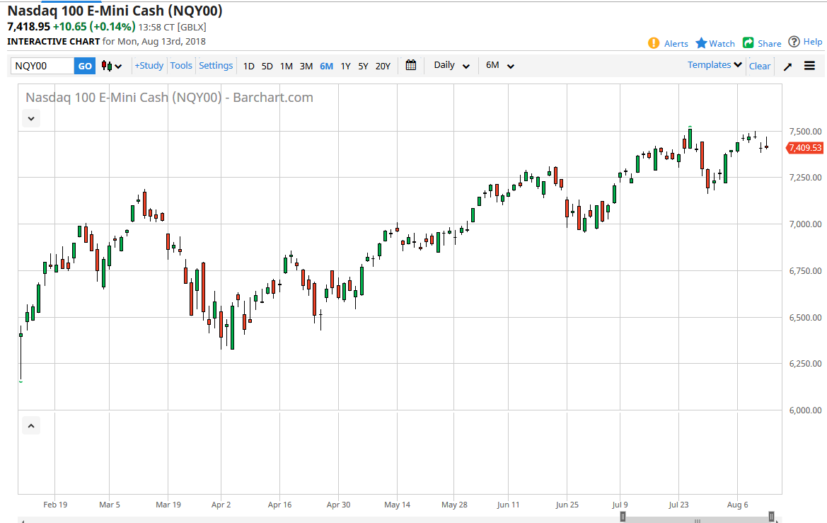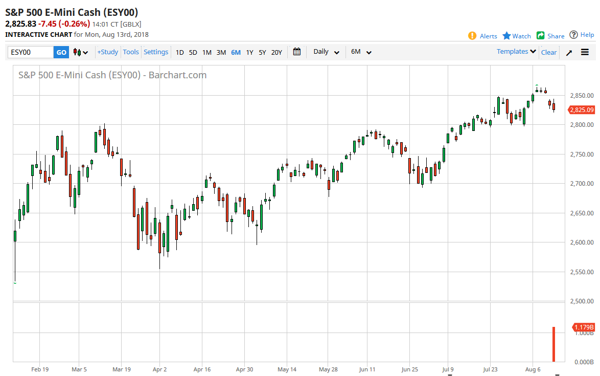 كان مؤشر S&P500 صاخباً جداً خلال تداولات الإثنين، حيث عاد المتداولين من عطلة نهاية الأسبوع. كان من الصعب جداً التمسك بالتداول خلال اليوم، حيث أننا تراجعنا، وبعد ذلك جاءت الشائعات بأن الأتراك سوف يطلقون سراح القسيس الذي بدأت كل المشاكل معه. ولكن، يبدو بأن هناك شيء من التوقعات بأن هذا الأمر على الأغلب لن يحدث، وبالطبع لم تظهر الحكومة التركية أي مؤشرات على التراجع، ولذلك عند هذه النقطة سوف نشهد على الأغلب تراجع هذا السوق نحو المستوى 2800، وهو المنطقة التي أعتقد بأنها سوف تقدم الكثير من الدعم. أتوقع بأن هذا السوق قد يستمر في القناة التصاعدية الظاهرة على الرسم البياني.