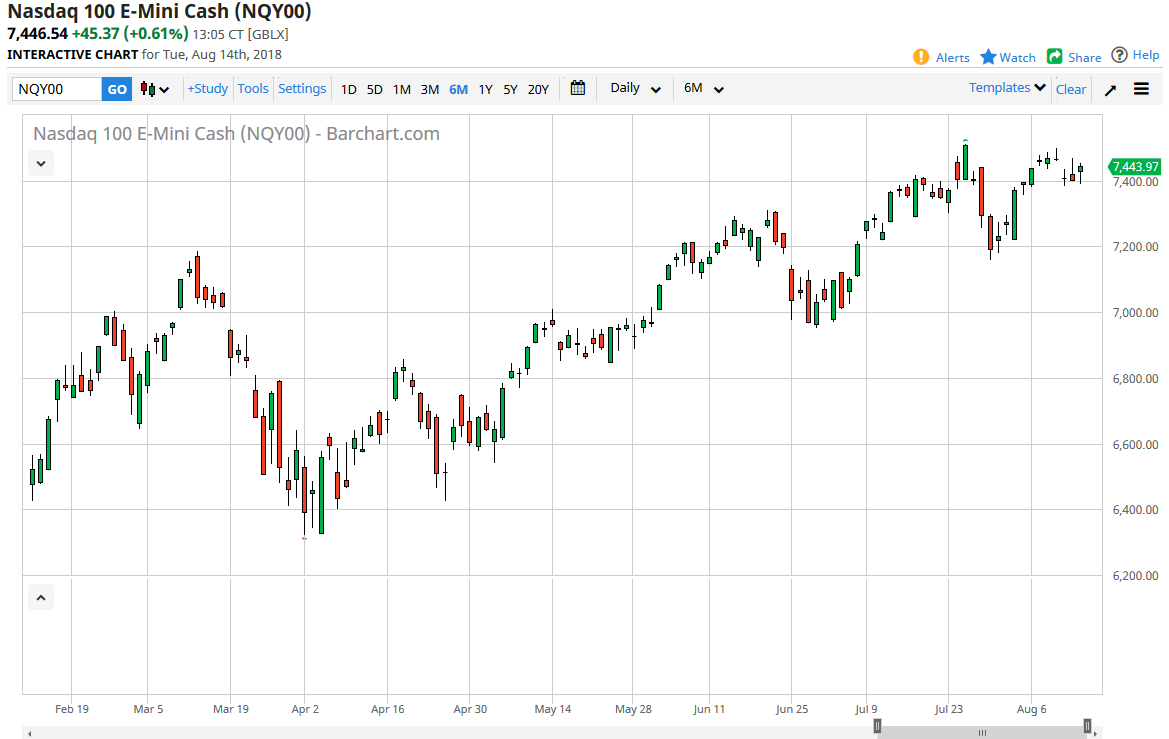 مر مؤشر S&P500 بجلسة إيجابية وحقق أكثر من 0.5% خلال اليوم، ولكنه لم يكن يوم سهل في السوق. أنا أدرك بأن هناك حجم كبير من المقاومة في الأعلى، وأن المقبض 2880 يستمر بكونه مركز توريد رئيسي. أنا أؤمن بالتراجعات قصيرة الأجل، حيث أنها من المفترض أن توفر الكثير من الدعم، خصوصاً بالقرب من المستوى 2800. أعتقد عند هذه النقطة بأن السوق سوف يستمر بالتعرض للكثير من الضجيج، لأن بصراحة هناك الكثير من المشاكل في العالم الثالث. العدوى أصبحت فجأة كلمة يستخدمونها الناس مرة أخرى، وليس الأمر متعلق بتركيا فحسب، في الواقع، قد تكون الصين هي المقصودة إن إستمر انهيار الياون. عند هذه النقطة، ما نزال في نمط تصاعدي، ولكن الناس بدؤوا بتحصيل الأرباح بشكل سريع.
