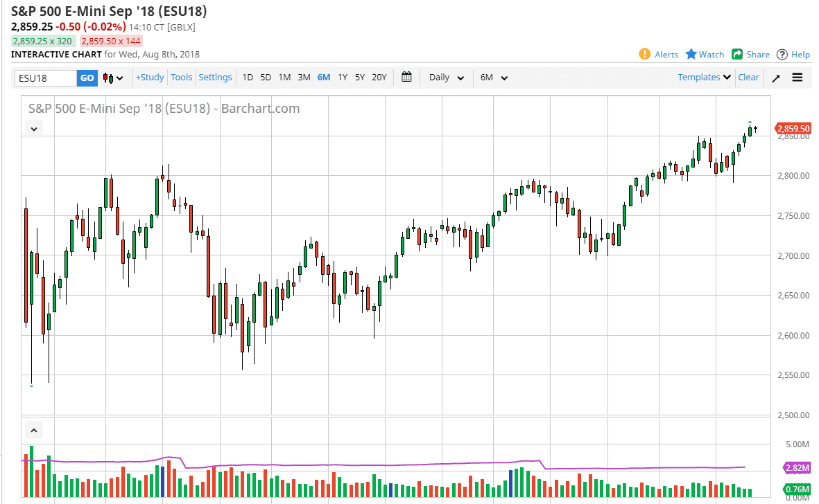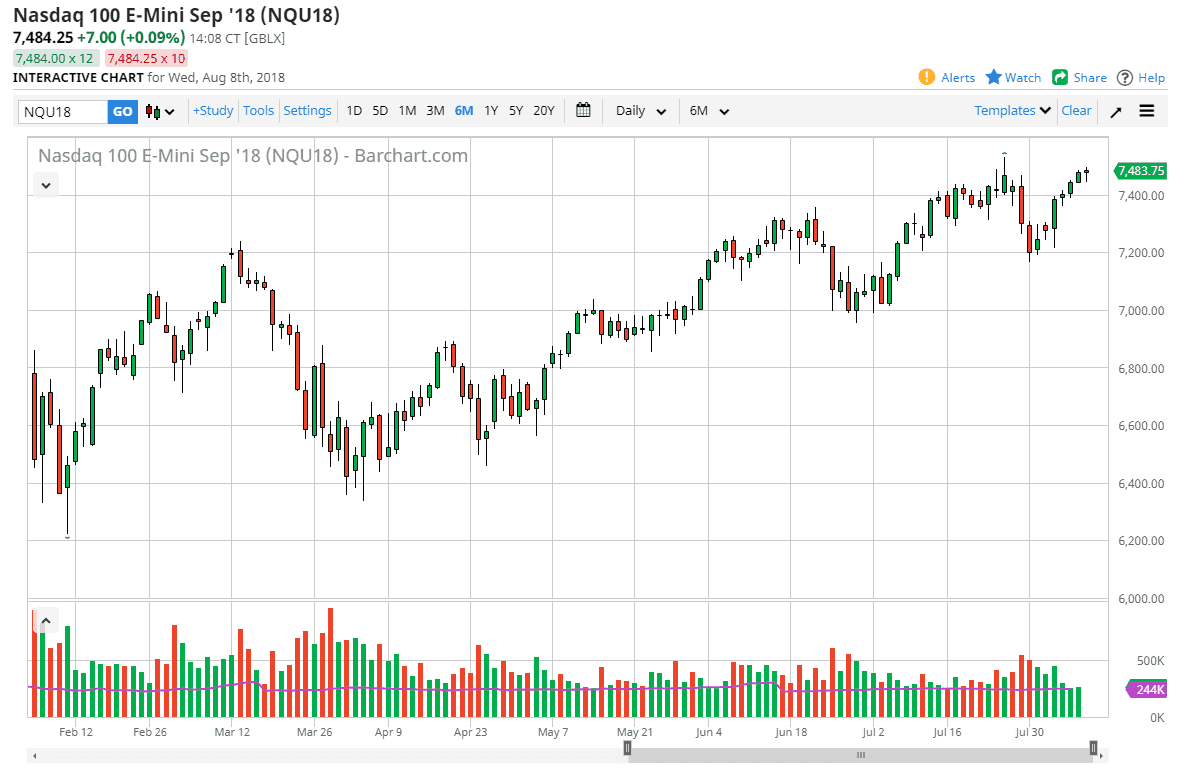 كان مؤشر S&P500 متقطعاً خلال تداولات الأربعاء، ولكنه لم يتغير نسبياً. في حين أنه لم يحقق مكاسب، إلا أنه كان تحول جيد بعد ما بدى بداية عمليات بيع في بداية التداولات الأمريكية. لهذا السبب، يبدو بأن هناك قدر معين من الاهتمام بالقرب من المستوى 2850، وأعتقد بأن المشترين سوف يعودون لدفع السوق للأعلى، واختبار المنطقة 2880 التي كانت مقاومة جداً في الماضي. أعتقد بأن هناك حجم كبير من الدعم في الأسفل عند المستوى 2800 كما كنت أقول، وأعتقد بأن ذلك يستمر في نوع من الشراء على التراجعات في هذا السوق. مخاوف الحرب التجارية يبدو بأنها حيدت حالياً، وبصراحة أعتقد بأننا بدئنا نرى ارتباط غريب مع الخوف. أعتقد بأن المال بدأ بالتحرك نحو الولايات المتحدة من الخارج، ويرفع أسعار بعض الأصول. موسم المكاسب الجيد كان مساعداً كذلك.