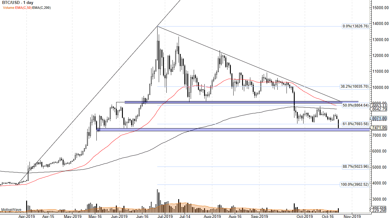 كتبت بالأمس بأن البتكوين تصبح أكثر اثارة للأهتمام بسبب أننا على الأرجح أن نرى قريباً أمر كبير يحدث إما عند 7,754 دولار أو فوق 8,200 دولار. كانت هذه توقعات ممتازة، حيث أننا حصلنا على اختراق تنازلي قوي ما دون الدعم السابق عند 7,754 دولار، والسعر حقق أدنى مستوى له خلال 5 أشهر.