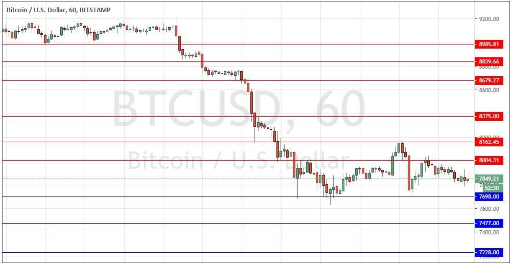 كتبت بالأمس أنني سأتخذ تحيزاً هبوطياً إذا ارتد السعر إلى مستوى 8000 دولار وشكل رفضاً هبوطياً. اخترق السعر هذا المستوى بسهولة، لذلك كانت هذه التوقعات مفيدة بما يكفي فقط للابتعاد عن المشاكل.