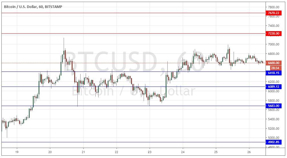 أعتقد أن النهج المحايد ينبغي أن يستمر هنا اليوم بدون تحيز اتجاهي - لذلك سأقوم إما بصفقة شراء عند ارتداد من 6418 دولارا أو صفقة بيع من انعكاس هبوطي عند 7228 دولار.