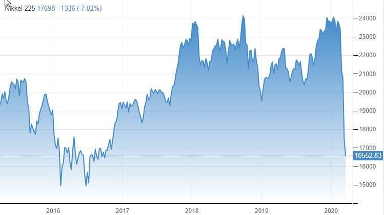 افتتحت على ارتفاع بعد أن أعلن البنك المركزي الأوروبي عن برنامج شراء سندات بقيمة 750 مليار يورو ،ومع ذلك، انزلق السوق إلى المنطقة السلبية حيث تصاعدت المخاوف من حدوث ركود عالمي بسبب وباء COVID-19، حيث انخفض مؤشر نيكاي 225 الرئيسي 63.91 نقطة أو 0.38 في المئة إلى 16662.64، بعد أن صعد إلى أعلى مستوى 17،160.97 في التعاملات المبكرة. وسرعان ما تخلت الأسهم اليابانية عن مكاسبها المبكرة لتغلق على انخفاض حاد، وفي الوقت نفسه، خسرت شركة SoftBank ذات الوزن الثقيل في السوق أكثر من 7 في المائة.