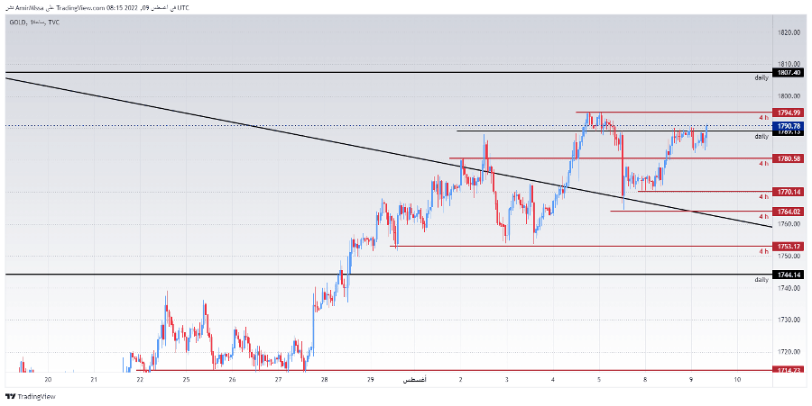 سجلت تداولات الذهب ارتفاعات طفيفه خلال التداولات المبكرة من يوم الثلاثاء، حيث يتحرك الذهب بشكل متباطئ بسبب التقارير الاخبارية المختلفة ما بين تواصل التوترات الجيوسياسة ما بين الصين والهند والنستمرة من الأسبوع الماضي بعد زيادرة رئيسة مجلس النواب الأمريكي،نانسي بيلوسي، لتايوان الامر الذي اظهر عن رد فعل غاضب من الصين، حيث ندد الصين بالزيارة بشكل رسمي تبعه القيام بمناورات عسكرية عند الخطوط الفاصلة للبلدين. في شأن اخر، تابع المستثمرون توقعات بتشديد أكبر من المتوقع سابقاً للسياسة النقدية في الولايات المتحدة الأمريكية بعد تقرير الوظائف الذي كشف عن نتائج أكثر تفاؤلاً من المتوقعات السابقة، وهو ما قد يعطي الفيدرالي الأمريكي مساحة أكبر لرفع الفائدة في إطار سعيه لكبح جماح التضخم.