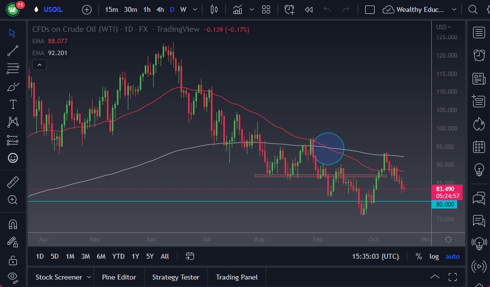 من المفترض أن يكون هناك دعم عند المستوى 80 دولار في الأسفل، ولذلكم أعتقد بأننا سوف نهتم بذلك المستوى إن قمنا بالاختراق للأسفل. إن قمنا بالاختراق ما دون المستوى 80 دولار، عندها يكون من المحتمل أن نتجه إلى الانخفاضات مرة أخرى. من الناحية الأخرى، عن قمنا بالتحول والاختراق فوق المستوى 85 دولار، عندها من الممكن أن يتجه السوق نحو المستوى 87.50 دولار، وبعد ذلك إلى المتوسط المتحرك لـ50 يوماً في النهاية. حصلنا مؤخراً على "تقاطع الموت"، حين يمر المتوسط المتحرك لـ50 يوماً ما دون المتوسط المتحرك لـ200 يوم. هذه إشارة طويلة الأجل، ولكني بصراحة لا أعتقد بأنك بالضرورة قادر على القيام بذلك التداول فوراً، ولكن في النهاية، سوف يستمر هذا السوق بالتعرض للكثير من السلبية بشكل عام. أفضل فكرة بيع التقدمات، إلا بالطبع إن شهدنا نوع من التغير الكبير في السلوك.